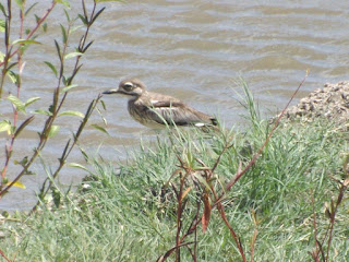 The Marabous kept harassing a flock of Cattle Egrets, giving Sue a chance of a nice picture of egrets in flight and showing again the value of the islands that were accidentally left when the dam was scooped last year. The egrets used the islands as a refuge and there were also many other birds such as this Water Dikkop using them.